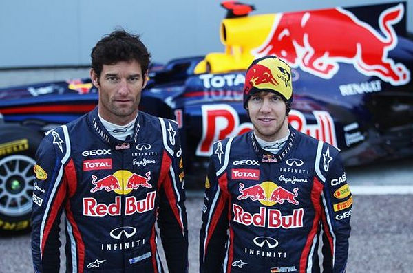 Red Bull車隊車手右起Sebastian Vettel與Mark Webber。