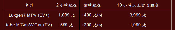 先導運行期間優惠時租價格: