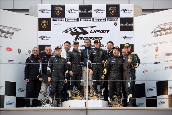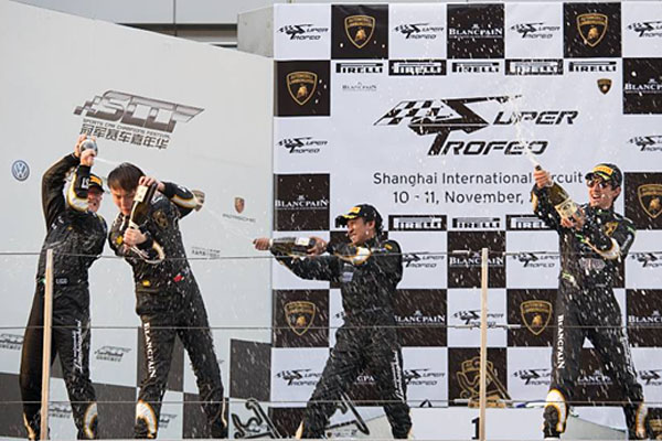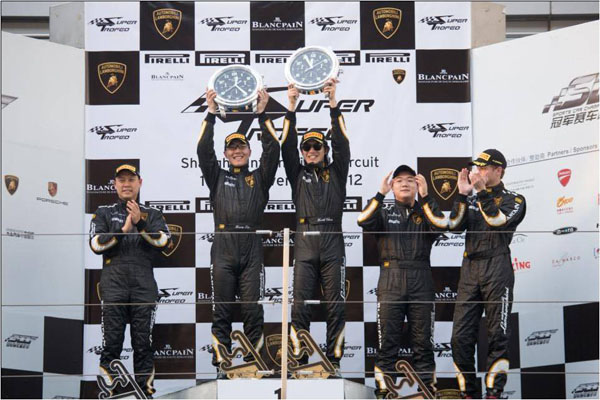 中國車隊Chen Ke Nan(右二)獲得2012年Lamborghini-寶鉑Super Trofeo亞洲挑戰賽業餘組冠軍。