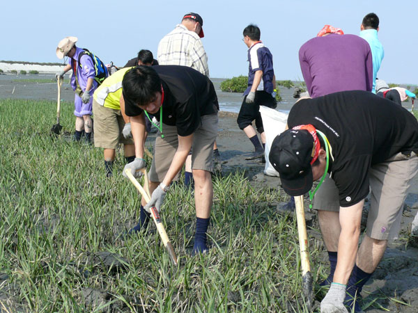彰化大城濕地,近年來發現被強勢的外來種植物—互花米草入侵,因其在潮間帶的生存競爭力極具優勢且繁殖迅速,造成台灣原生種的植物如紅樹林植物面臨生存威脅;加上其強勁的地下莖盤根錯節,壓縮了潮間帶底棲生物的生存空間,因而造成種類及數量的下降,改變了當地的食物鏈結構,進而也降低生物的多樣性;太古汽車的同仁及眷屬奮力地拿起圓鍬,在泥濘的地上向下挖斷互花米草的地下莖並拔除,唯有如此斬草除根,才能夠根絕它的生長;最後在大家的努力下,總共清除了281公斤的互花米草,希望透過大家這次的努力,能減緩其在當地蔓延的速度,並早日達成全面根除的目標。