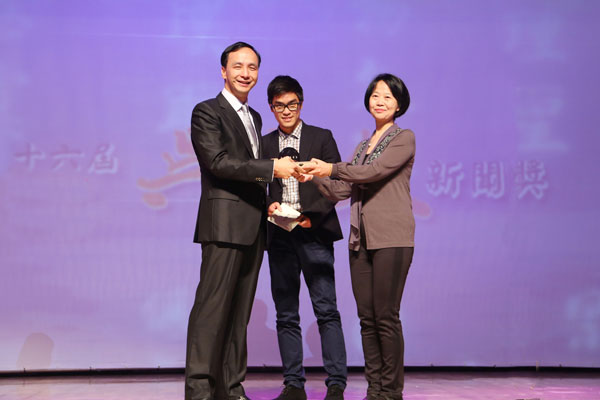 「經典雜誌」獲得「專題新聞攝影獎」,肯定獲獎者透過手中鏡頭詮釋新聞內容,由評審丘岳先生(左)頒發獎項予獲獎代表。