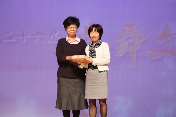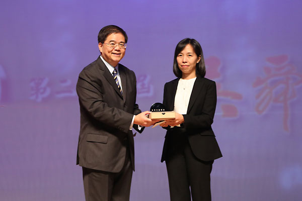「國際暨大陸新聞報導獎」由《天下雜誌》「國家之路」系列報導獲獎,由評審高惠宇女士(左)頒發獎項予獲獎代表。