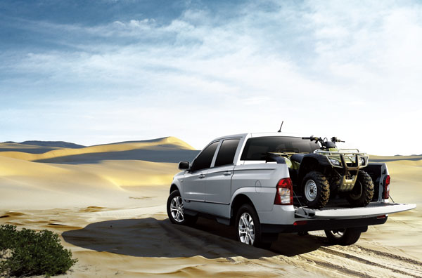 最後,New Actyon Sports也以超越同級距貨卡的配備級距,將整合式鑰匙晶片防盜系統、雙前門迎賓警示燈、兒童安全鎖、車速感應自動門鎖〈緊急時自動解鎖〉、倒車雷達附CCD倒車影像顯示等配備,全數納入標準配備項目內,讓擁有New Actyon Sports多功能運動貨卡,也如同坐擁進口豪華房車的尊榮規格。