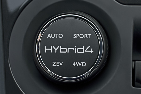 此外,在3008 HYbrid4上被置了一套類似Land Rover Terrain Response地形反應系統的控制界面,但是主要是用於調整車輛動力輸出模式:第一段為「Auto」模式,完全由動力管理系統控制;第二段為「ZEV零排放」模式,也就是全電動模式,適合於低速運行,以達到零排放、零噪音效果;第三段為「4WD」模式,意指柴油引擎與電動馬達同步運行,分別驅動前後軸,以達到四輪傳動效果,具備更好的驅動性能,可攻克輕度越野路面;第四段為「Sport模式」,用於需要較多動力輸出時,除了雙動力同時輸出外,變速箱也會延後升檔,讓引擎轉速提高,達到全動力輸出。