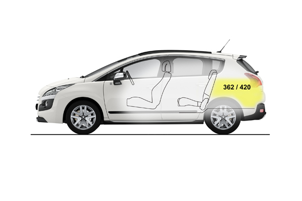 3008 HYbrid4除了在節能環保上的優異表現,也延續了3008的多元化功能性,其中導入智慧Multiflex空間概念,巧妙安排電池配置與後懸吊設計,讓3008 HYbrid4仍具備420L的行李廂容積,同時在底板下方另有66L額外空間,配合座椅變化可擴充至1501L,實用性十足。