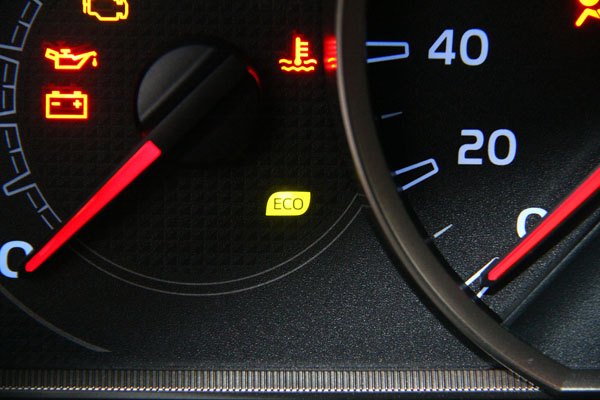 設於儀表板左環內的eco燈號,於低轉速節能行進時便會亮起,提醒駕駛者以維持節能模式行駛。