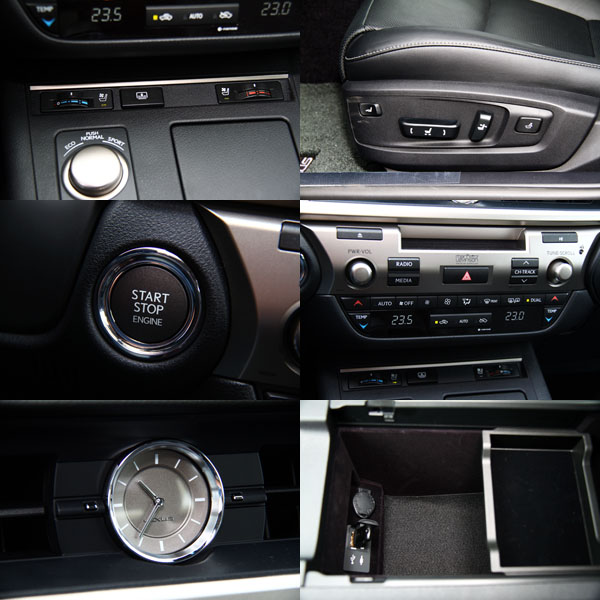 在ES 350上,包括雙前座加熱/通風座椅、智慧型啟動控制系統(Smart Access)、石英鐘、雙前座10向電動調整付三組記憶座椅、Mark Levinson® Premium音響〈附15支喇叭〉、外皆音源介面等皆為標準配備。