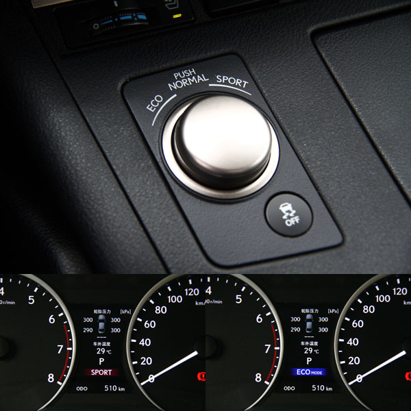 ES 350亦配有智能多重駕馭模式調整功能,具有ECO、NORMAL與SportN三種模式,其中切入ECO模式後,馬力輸出即調整為最佳節能狀態,儀表板背光則轉換成節能科技的藍色,換入SPORT模式,TRC將會延遲介入時間,儀表板的背光轉換為充滿動感的紅色,賦予駕駛者較多的自主操駕空間。