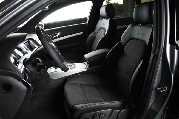 雙前座麂皮/真皮材質跑車座椅〈附S-line飾徽,搭配銀色縫線〉。
