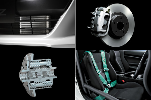 氣冷引擎專用機油冷卻器、四輪通風煞車碟、Torsen LSD、以及四點式安全帶與六點式防滾籠等,皆為BRZ RA Racing的標準配備。