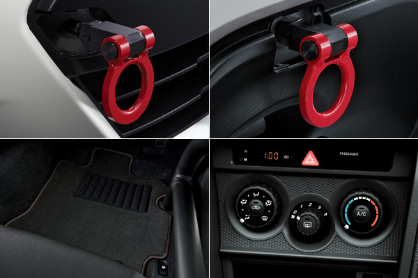 BRZ RA Racing也具有賽車專用的前後拖勾環,而雙前座腳踏墊與手動空調系統等則算是特別的「舒適配備」。