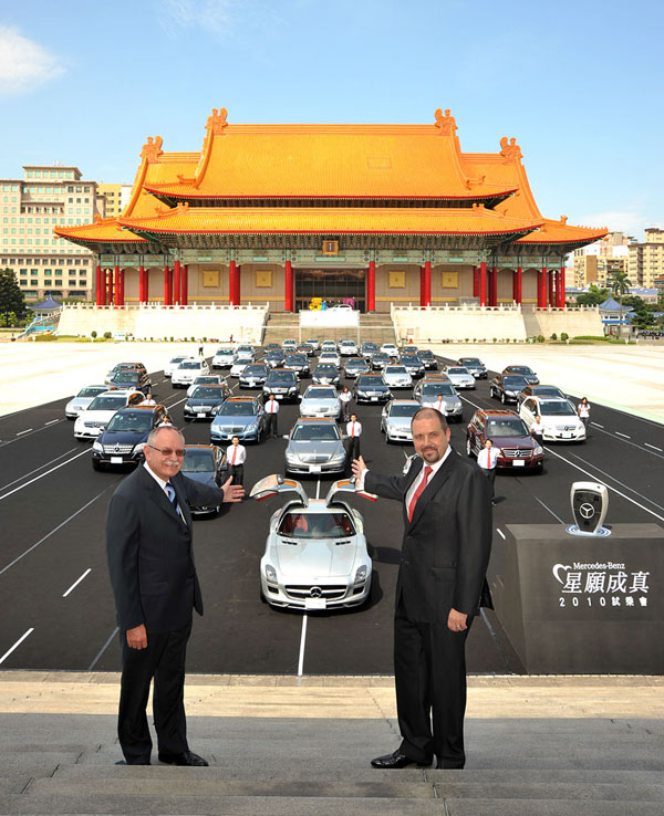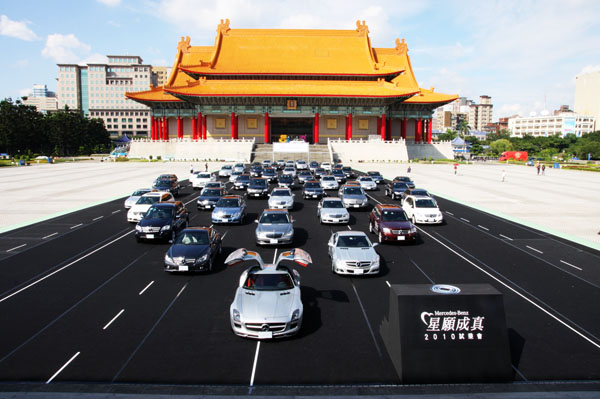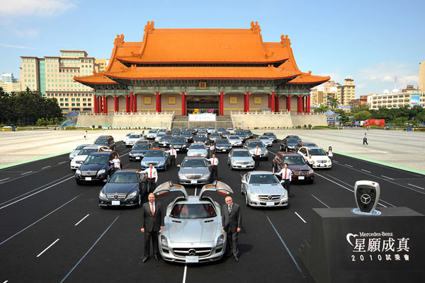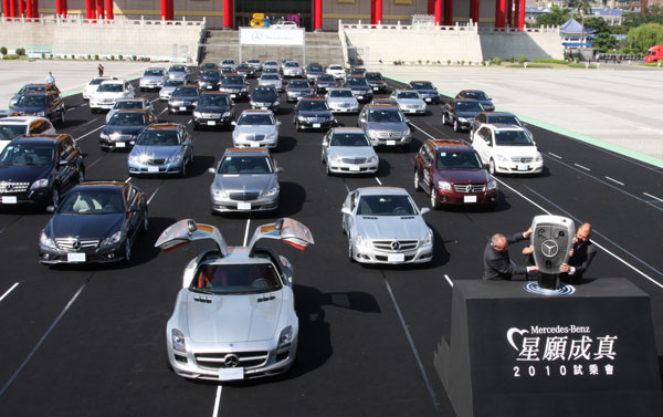 「M-Benz星願成真,2010試乘會」同步於台北自由廣場上發動引擎正式啟動,台灣賓士於自由廣賞上精心打造出賽車跑道,並由問世不久的SLS AMG此全新超跑領軍,率領M-Benz旗下超過50輛車款陳列於廣場中央,氣勢非凡。