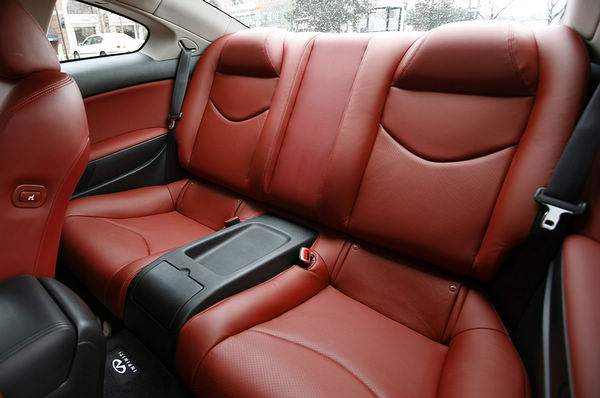 更令人欣喜的是,G37 IPL Coupe在一般行駛時車室相當地安靜宜人,不過一但駕駛深踩油門之後,雄厚紮實的引擎聲浪也令人感到腎上腺素極速分泌。事實上,G37 IPL Coupe就連車色也經過精心挑選,不論是石墨黑或金屬紫,在驕陽的照射之下均有不同的色彩變化。而其內裝也以Infiniti G原有的高級用料與設計為基礎,導入Infiniti IPL車系標配的車室皮革紅色縫線、多功能跑車方向盤、電動調整跑車座椅與鋁合金油門/煞車踏板組等標準配備,更重要的是,舒適性不因性能面的強化而有所減損。在空間使用部份,G37 IPL Coupe就如同所有的G Coupe,除了提供寬敞舒適的雙前座乘坐空間,後座部份則適合於小朋友或放置物品。