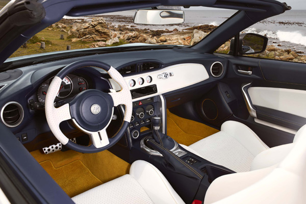 FT-86 Open concept以藍色、白色、金黃色構成內裝的色彩基調,藍天、白雲、太陽,也正是敞篷車所能提供的獨特駕馭感受。