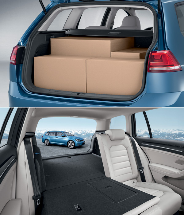 Golf Variant全長較Golf掀背長307mm,達到4,562mm,而旅行車所重視的車尾置物空間縱深方面,Golf Variant在打平後排座椅後,車尾空間縱深達1,831mm,而一般後座於使用狀態下,縱深也有1,054mm,車尾行李廂底板高度僅630mm的Golf Variant,一般狀態下即擁有605公升的車尾廂置物容積,若後座打平,則可一舉增加為1,620公升。