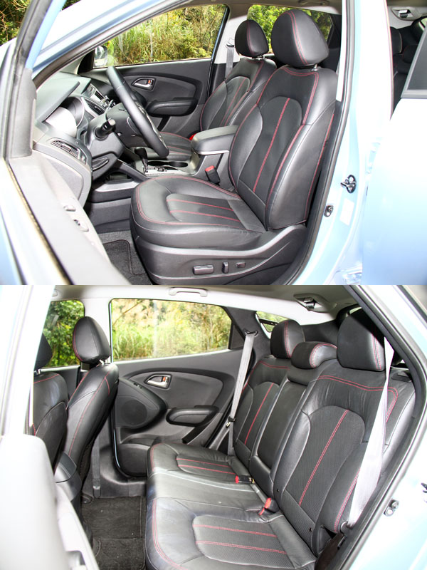 ix35 S雖然在車長上略短於同級對手,卻擁有最佳地2640mm長軸距,使得其仍擁有優異的車內空間表現,而為呼應〝S〞車型定位,特採用紅色縫線搭配黑色皮椅,略增運動氣息。