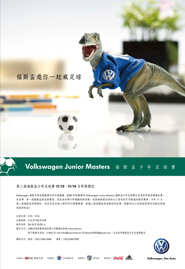 VW福斯汽車總代理太古標達汽車自2009年舉辦首屆VW Junior Master福斯盃少年足球賽以來,頗受社會好評,冠軍隊伍更受邀參加四年一度的福斯盃全球總決賽,到西班牙馬德里與來自全球共20個國家的小學生一同競技,讓台灣站上世界的舞台!而太古標達汽車總裁黃齊力更承諾將繼續舉辦福斯盃少年足球賽,讓在台灣相形弱勢的足球運動能夠繼續向下紮根!