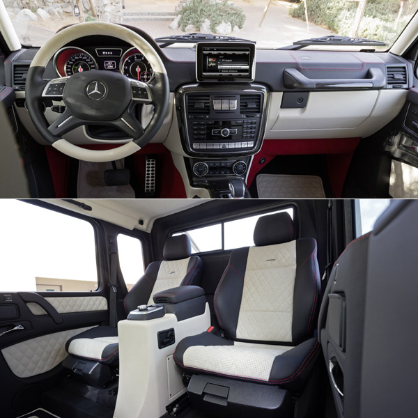 不論任何地形變化、或氣候影響,G 63 AMG 6x6的乘客們同樣能享受來自Mercedes-AMG所打造的舒適內裝與豪華配備,即使身處像沙漠這樣的「道路」,G 63 AMG 6x6仍然是一部能提供「乘風破沙」駕馭快感的機器;而車尾平台部份,AMG則運用堅實的竹材打造。