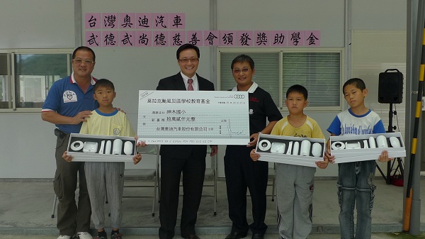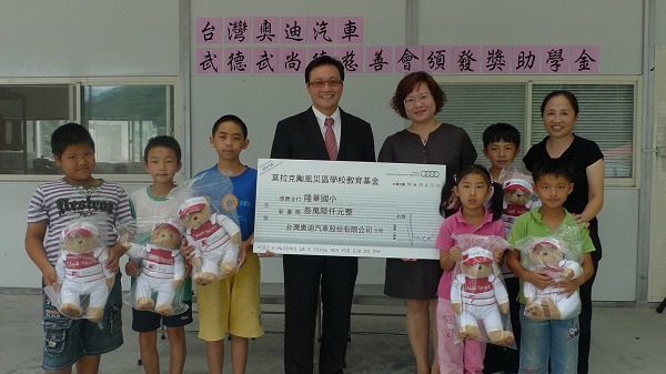 八八風災冗長的重建過程需仰賴社會各界伸出援手,透過台灣奧迪汽車這項別具意義的災區學童長期濟助計畫,台灣奧迪汽車總裁邱山祥先生表示:「台灣奧迪汽車本著善盡社會責任的精神之下,將繼續以實際行動幫助災區學童,期望能讓學童們在求學的階段無憂無慮,並讓學習永不間斷!」