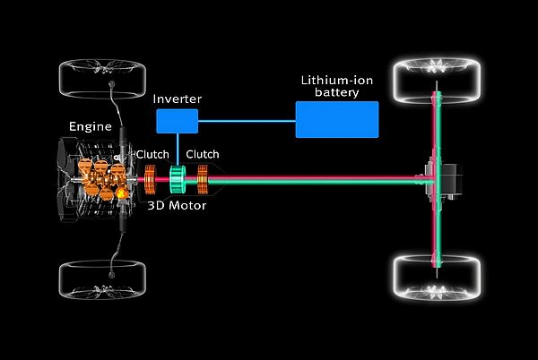 更值得一提的是,搭配此油電複合動力系統的不是其它車廠所慣用的CVT變速箱,而是Intelligent Dual Clutch七速電子控制智慧型雙離合器變速箱,結合退檔自動補油、手排換檔模式與Adaptive Shift Control (ASC)自適應換檔控制等功能,動力輸出顯得相當有勁且立即。