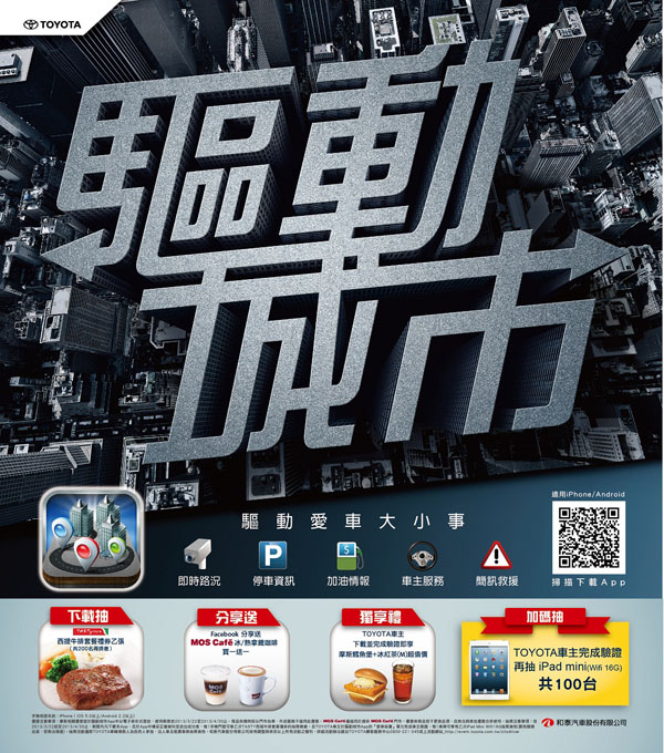 和泰汽車T.H.車輛營業本部劉傳宏經理表示:「和泰所代理及販賣的車種除了順應時代及環境的趨勢推出能滿足消費者需求之「節能」、「減碳」、「高性能」的車種之外,特別針對Young世代積極推廣並導入富時尚、動感、性能及操控等年輕世代偏好的商品,大幅提升駕乘樂趣。」為了爭取新世代年輕族群對Toyota的好感度及偏好度,Toyota積極展開「新媒體行銷」強化與年輕世代溝通,包括Facebook官方粉絲團、新車介紹APP、ipad影音及微電影等新行銷手法;今年更提供台灣車壇首創之整合性行車服務APP產品「驅動城市」,透過科技軟體的應用,以年輕世代最歡迎與熟悉的方式為車主打造更便捷與安全的用車生活!」