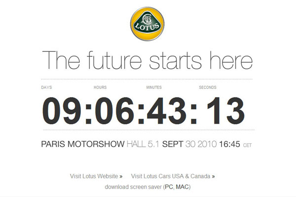 目前於Lotus官網中進行的倒數計時動作,就是為新世代Elite現身巴黎車展作暖場預告!