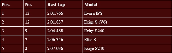 5月1日Lotus組別最快單圈前5名: