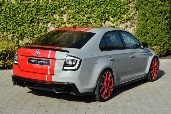 以旗下Rapid小型房車為基礎,Skoda將其改造為一輛道路用賽車,Rapid Sport概念車採用雙色調烤漆,而兩側的19吋鋁圈也比照辦理、並與車色做雙色調對比;全車空力套件、外擴輪拱、與雙排氣尾管等,更賦予Rapid Sport完全不同的視覺感受,而引擎蓋凹入的空力設計,更突顯Rapid Sport車頭稜角分明的造型、以及寬踞的動感態勢。