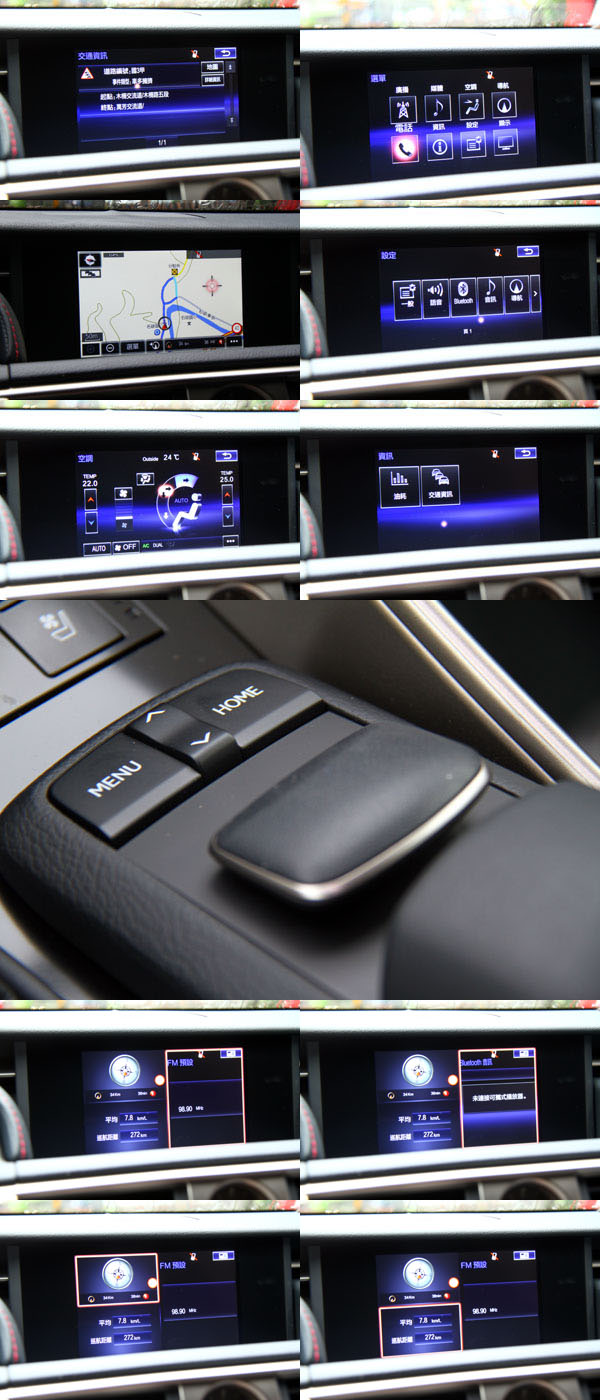 IS300h F SPORT同樣配置Remote Touch直覺式資訊操控裝置整合多功能資訊系統,並且在8吋的螢幕中可快速選擇顯示行車電腦資訊、衛星導航或音響資訊。