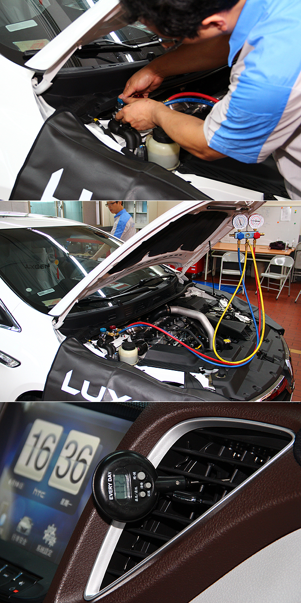 為了確保空調系統能在炎炎夏日順暢運轉,冷媒壓力進行檢查,並偵測空調出風口的冷度,確保能夠給予車主舒適的乘坐環境,不會讓車室在夏季變成烤爐。
