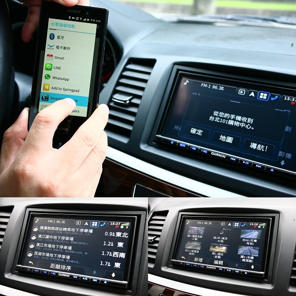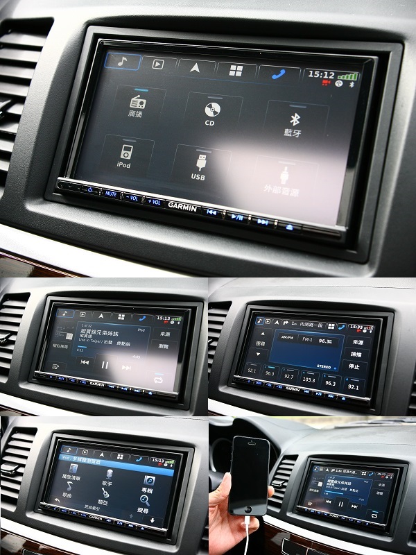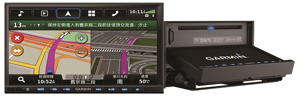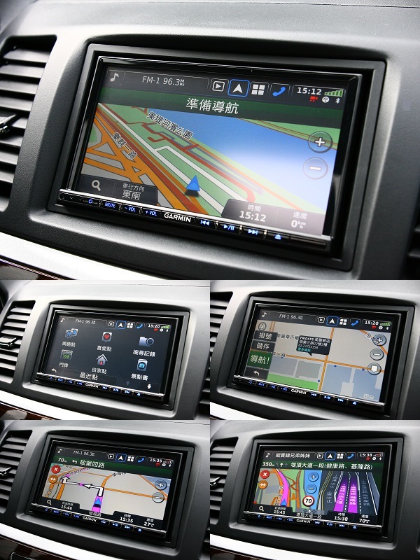 第三個選項是衛星導航部分,大家所熟悉的Garmin圖資在此依然簡單且詳盡好用,各部分功能也應有盡有介面就手,同時在使用衛星導航狀態下,其他播放訊息與功能選單列也仍會在上方顯示,即便使用導航也可以得知諸如廣播台號或是歌曲曲目等重要資訊。