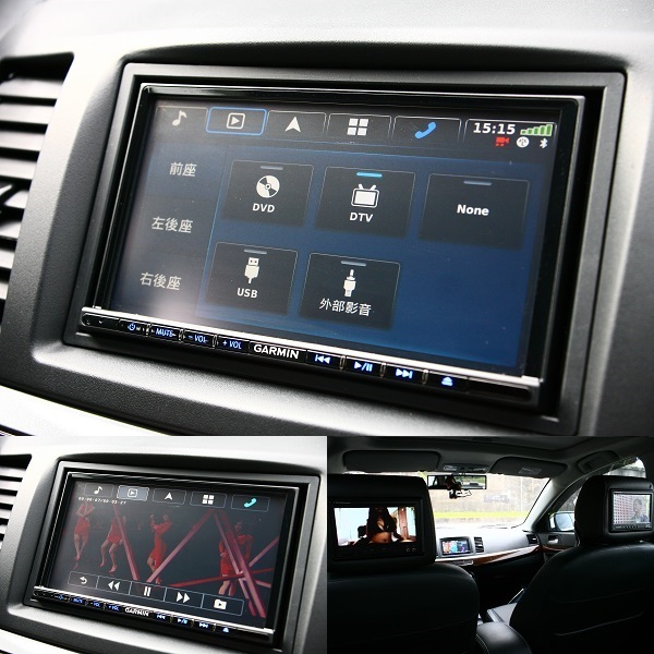影像的部分則有四個選項,包括DVD、DTV(HD衛星電視)、USB與外部影音等,值得注意的是,假設同一個隨身碟裡有音樂檔也有影片檔,則必須分別到音樂或影像選項裡才能播放。而Navtune 7190還有一個很棒的功能,那就是可以透過主機分別控制不同的顯示器,假設雙前座頭枕後方各有一具螢幕,則就可以由此自由控制各自收看的影像,甚至可以讓主機螢幕、左後螢幕跟右後螢幕分別播放不同的影像源,滿足全車出遊時各自不同的喜好與需求。