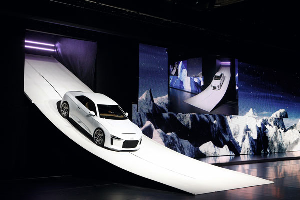 全新亮相的quattro concept是基於RS5為基礎衍生而來,車身尺碼部分於車高降低了40mm、軸距縮短150mm,並且在Audi當今的前衛風格中,融入1984年soprt quattro地硬派設計元素,由其是厚實地C柱直接與短捷的車尾相連,搭配上自動升啟式尾翼,若由側面看去,quattro concept就像是跟隨著時間的腳步,將過去方正地每一條直線,改由流行的曲線,但卻不失原有風貌,完美地將現代科技與經典設計相結合,也讓它就有如一頭生猛有力的野獸般蓄勢待發。