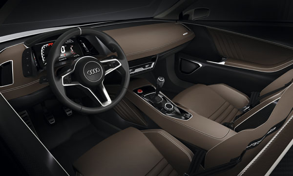 而整個中控台設計則是以駕駛者為中心,所有操作介面全數簡化,在控台下方僅保留了觸控式地空調系統操作介面,其餘包含音響、行車電腦與衛星導航則全數整合至著名地MMI系統中,並且輔以方向盤快捷鍵,提供最迅速地操作機能,至於所有資訊顯示功能也完全集中於儀錶板中的大型液晶螢幕中,除了基本的速度、轉速等基本車輛資訊外,由於當年quattro是越野賽事的常勝軍,因此,當車輛切進賽車模式時,也提供類似越野賽中副駕駛地報路功能,在儀錶板中最右側便會出現類似WRC電玩中的路線輔助顯示,可提供及時的路線指示,而且在儀錶板外框左側還具備了計時系統,讓駕駛可以自行記錄單圈秒數,至於對秤的右側按鍵則是與MMI系統對應的功能按鍵。