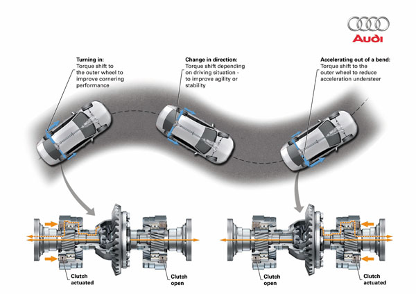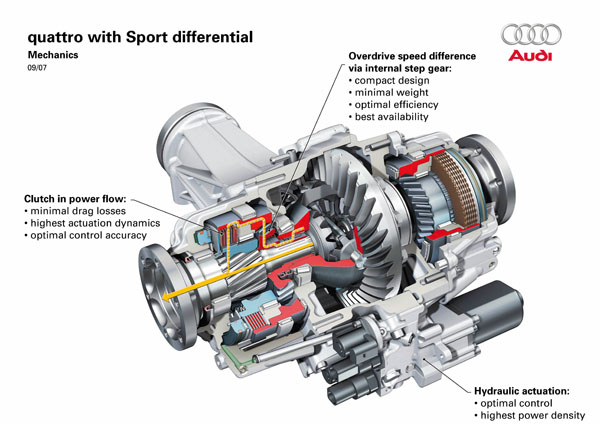 1980年Audi以quattro四輪傳動系統,領先車壇,30年來quattro四輪傳動系統歷經多次變革,並且在不同車系上,針對其特性,配置不同差速器,以求最好的操駕表現。