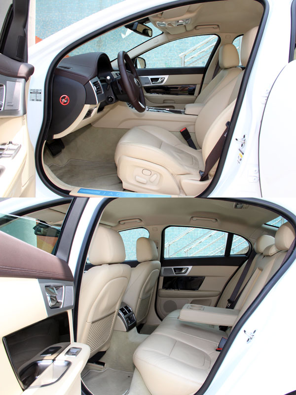 進入3.0 V6 S/C Premium Luxury座艙,以英國手工製核桃木飾板搭配滾花紋鋁合金飾板營造出英倫尊貴氣息,並且大量採用Soft Grain皮革包覆車內各部件,具備同級車最佳地質感,配備部分,雙前座亦採整合10×6向電動調整附駕駛座2組記憶功能,中控台上內建7吋多功能觸控螢幕並結合iTech多媒體整合系統,整了音響、空調與中文衛星導航等功能,並標配整合11支高傳真揚聲器的Meridian 380W Sound System 環繞音響系統,同時首度配置BSM 車側盲點偵測,全面提升New XF的安全表現。
