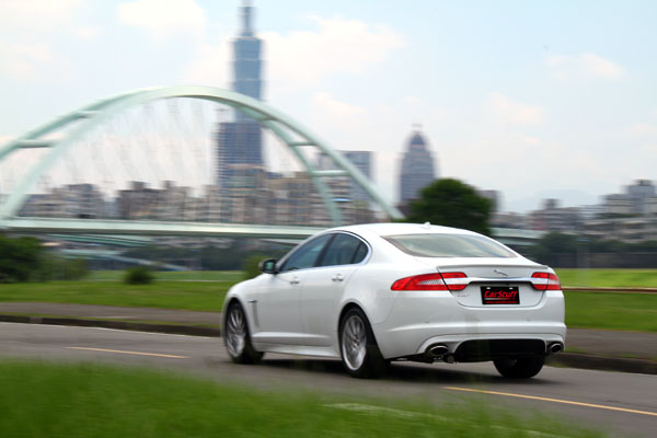 試駕的XF 3.0 V6 S/C Premium Luxury車型上更配備了原廠Aero Dynamic空力套件組,包含Aero Dynamic前保桿含黑烤漆水箱護罩、Aero Dynamic專屬側裙組、整合下擴散器的Aero Dynamic後保桿含黑烤漆下擾流以及Aero Dynamic後尾翼,進一步強化運動氣息。