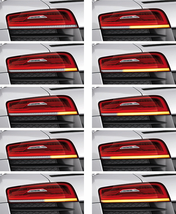 Audi透露小改款A8將會導入與現行R8相同的Dynamic Display方向燈動態顯示套件,撥動方向燈撥桿後,方向燈將不再以閃爍的方式呈現,而是以動態流動的狀態顯示。