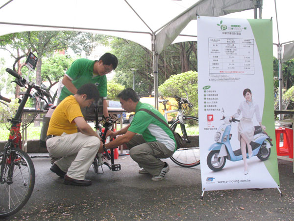 以F1運動小摺為設計基礎的e-moving電気小摺,使用環保、體積小且壽命長的鋰電池,在電力輔助下極速可達25km/hr,續航力則有50~70km,同時車架通過歐盟EN自行車檢驗標準,在中華汽車的資源整合及品質堅持下,整車更通過1萬公里的嚴苛耐久試驗,遠遠高於業界3000公里慣例!今年購車還可享有環保署補助3,000元,更吸引現場不少民眾詢問,想擁有一台輕便、好攜帶、時尚、騎起來又不費力的電動小摺,e-moving電気小摺在無車日大放異彩!