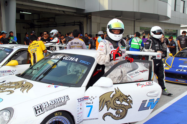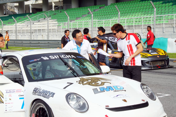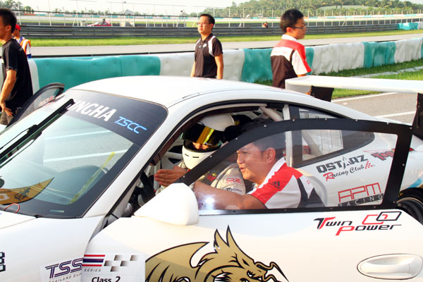 直到抵達馬來西亞,以及經過利曼龍公司人員的解釋下,才對於本次行程有了初步的概念。同時我們也在賽前訪問了本次主要參賽的車手、1976年出身的林青山,他是一位在台灣出生的正港台灣囝仔,12歲時隨從事珠寶、手飾品業的父母至泰國設廠定居,成年後亦投入家族事業,並事業有成,而喜好追求速度感的林青山,年輕時曾是重機愛好者,但在一次賽道活動中發生嚴重車禍後,讓他決定換一個較安全的方式追求速度,此時,他認識了另一位於泰國發展、經營汽車百貨改裝的台灣車手陳建宏,引領他進入賽車運動領域,於是在2010年時以一輛Honda Civic開始參加Thailand Super Series泰國房車系列賽中的Super 1500組別賽事,連續獲得優異成績,而為了晉升更高等級賽事,獲取更激烈的速度感,在參加Super 1500賽事三年後,他決定跳過再上一級Super 2000組別〈陳建宏即為現役Toyota泰國廠隊的Super 2000組別參賽車手〉直接挑戰最高的Super Car組別賽事,在此之前,他在回台灣時,因緣際會下認識了利曼龍公司的賽車界聞人江嘉仁先生,便由利曼龍公司替他規劃各項參賽事宜,包括透過關係購入本次參賽使用的2008年份Porsche 911 Cup Car,並與PCCA〈Porsche Carrera Cup Asia〉 技術服務合作單位EKS Motorsport洽談後勤維修工作,讓林青山可以在原先幾無資源下,獲得足夠後援,並且在通過泰國汽車競賽主管單位的認可下,得以順利參加Thailand Super Series Super Car組別中Class 2之賽事。