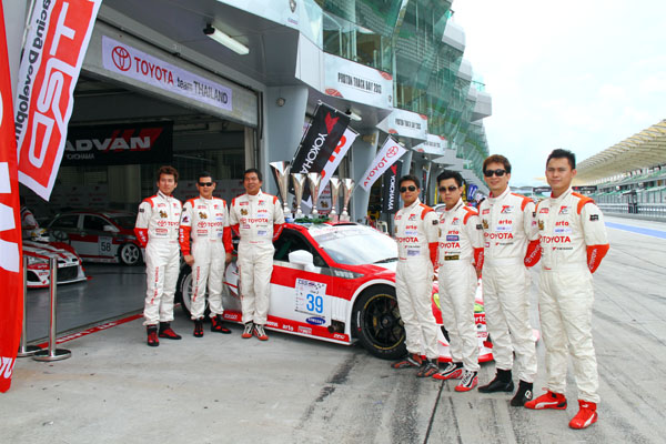 Toyota Team Thailand是泰國唯一原廠支援的廠隊,共有七位車手參與不同組別賽事,右二即為台灣車手陳建宏,左二則為速有泰國車神的C. Nattavude。