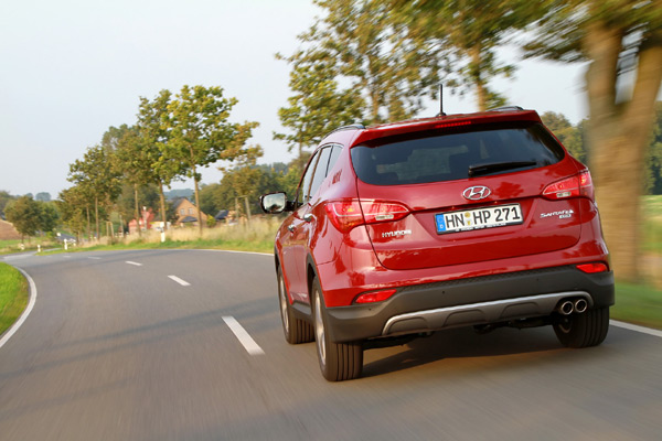 輸出150hp最大馬力的2.0 CRDi共軌柴油引擎,搭配有一具電子控制、附可變葉片幾何的渦輪增壓器,在電磁閥控制的燃油噴嘴以1,600bar的壓力將柴油注入燃燒室前,渦輪增壓器會先注入大量新鮮空氣,如此一來,這具引擎在低轉速域時即可擁有強大的推力,其39.05kg-m的峰值扭力在1,800-2,500rpm轉速域間全數爆發,除此之外,Santa Fe 2.0 CRDi的平均油耗更有16.39km/l的水準,碳排放也僅有159g/km,讓這部SUV獲得歐陸車輛耗能B級的評等,更使Santa Fe 2.0 CRDi成為歐洲市場最具油耗經濟性的中型SUV之一。