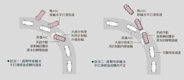 ASC車身動態穩定控制系統,可有效維持車輛行進安全性。