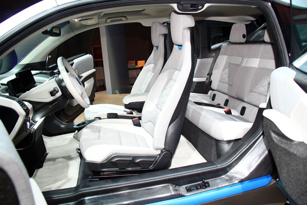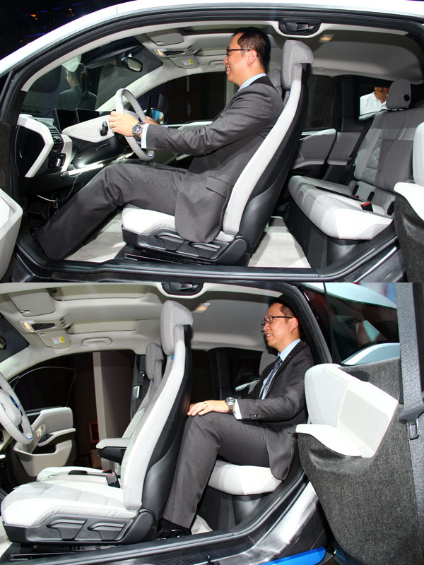 車長約4米的i3採觀音開式車門設計,並具備良好的車內空間,圖中空間示範者身高為182cm,乘坐於前後座時空間皆相當足夠。