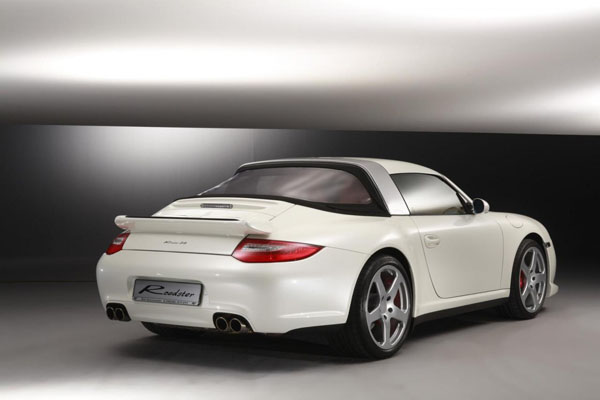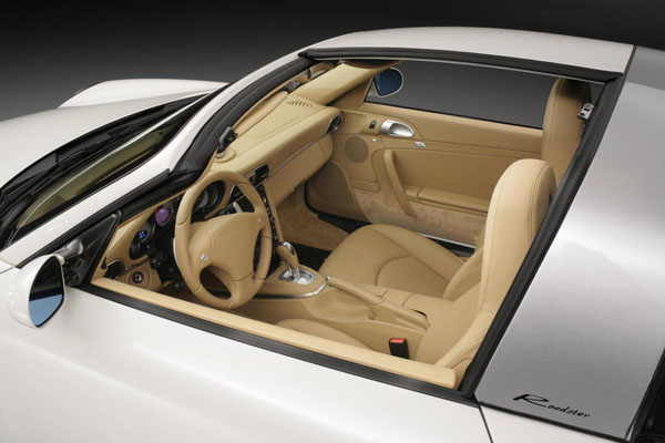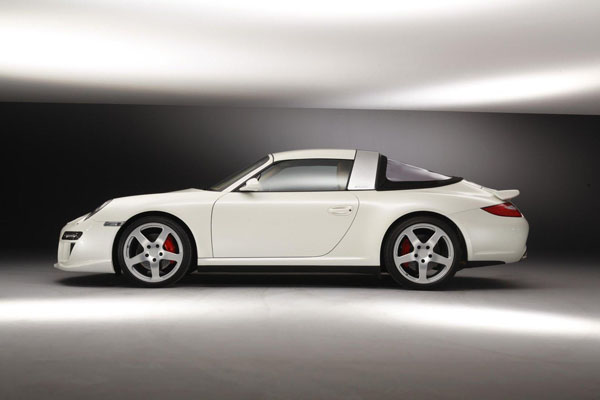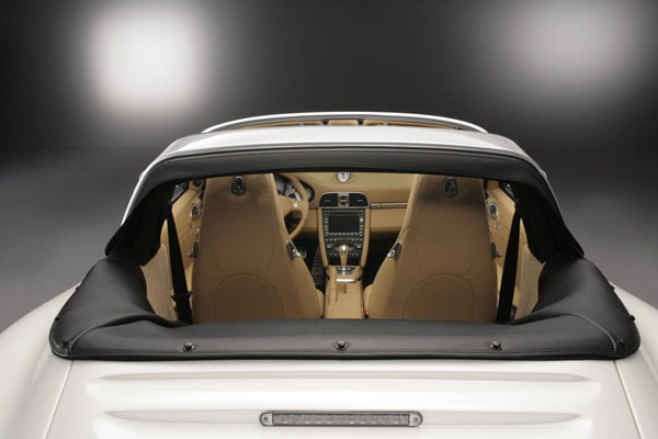 911 Targa,是個令許多車迷熟悉的車系,至今也依舊名列Porsche 911車系家族成員之一,不過從第一代車型問世時,經過多時演進,於993世代時便將原先經典的造形重新修正;而為了讓過去911 Targa經典造型再現,RUF團隊以當前的911車型為基礎,師法過去設計,在車頂的部分導入一ㄇ字型防滾架,而在前擋風玻璃與防滾架之間的車頂採可拆卸式設計,而防滾架至車尾處,則為特殊打造的三層苯乙烯玻璃材質,具備可折疊機能。