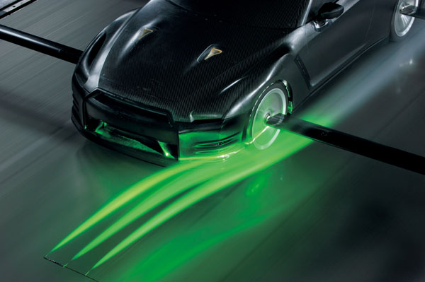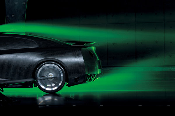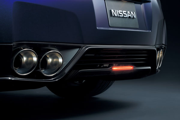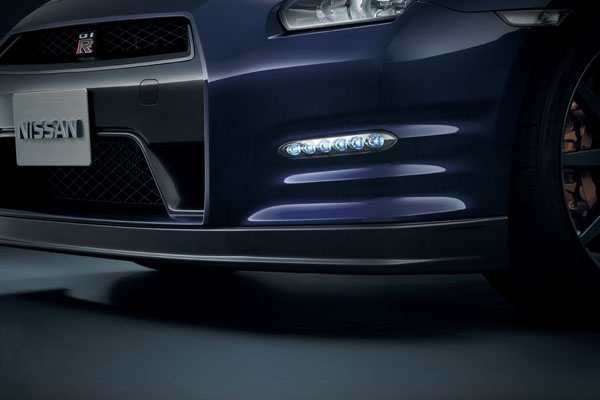 全新發表的2011年式GT-R,不僅在動力上升級,無論外觀、空氣動力表現、座艙氛圍等都經過同部改良,其中在空氣動力表現部分,於前保桿兩側增加擾流鰭片,可讓前方下壓力增加約10%,同時可將空氣導至前輪,增加前輪煞車冷卻效應,此外,也首度將LED日行輔助燈融入造型中,兼具美觀與增進行車安全效果,前氣壩部分同樣對應空氣動力與散熱效果也經過重新設計,加大了尺碼與改變造型;車尾部分,則同樣對應空氣動力需求重新修飾後保桿造型,並且在中央部分設置下擾流翼,同樣可增加10%下壓力與底盤地散熱效果,而且還將LED後霧燈融入後下擾流翼中,增加雨霧狀態下的行車安全,此外,排氣管的口徑也有所增加,氣勢更勝以往。在經過整體與空氣動力學上的改變下,也使得風阻係數由原來的Cd 0.27降至Cd 0.26。