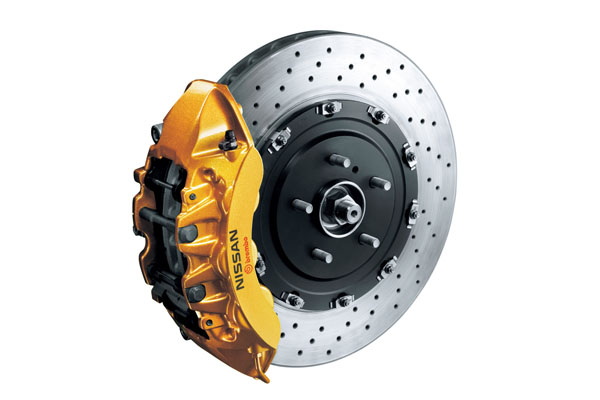 Nissan為GT-R配置了390mm的大尺碼通風碟搭配六活塞卡鉗,提供最佳地制動效果。
