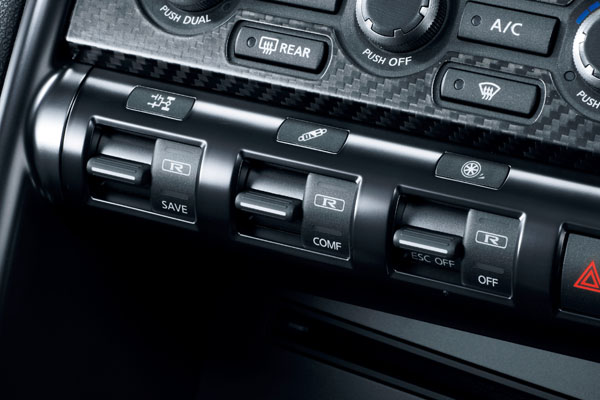 另外,還追加了Save Mode節能模式,利用電腦控制使得引擎扭力提前與提前變速箱換檔時間,而且更首度增加2WD驅動模式,只要長按切換鈕4秒,驅動系統即會轉變為後輪傳動;除此之外,為增加車輛與低速時的駕駛便利性,新款GT-R與時速10km/L,會適切地改變動力輔助轉向系統齒比,使得方向盤轉動幅度減至原來地一半,低速行駛不再需要大幅度地轉動方向盤。至於在提升操駕樂趣部分,也重新設定了R-Mode運動模式下的各項參數,讓換檔時機更為精確,VDC-R系統的介入程度也有所改變,提供了駕駛更多的自主駕駛空間!