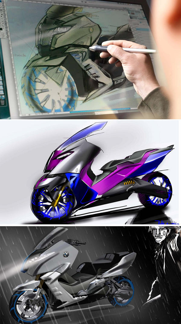 Concept C在外觀上導入了許多品牌市售車的元素,像是S1000 RR與GS大鳥車系的設計語彙,讓人一眼就能夠看出是BMW Motorrad的作品,不過其實也是與許多大型綿羊有著一樣的輪廓,並且比照許多款BMW的概念車,金屬灰色烤漆打底,搭配鍍鉻與藍色線條雙元素在造型上襯托出未來的科技感;除了一般CVT變速箱的配置之外,BMW Motorrad更將幾項大綿羊級距中少見的創新導入,像是以中空軸設計作為後搖臂結構、前雙碟盤搭配ABS、LED頭燈、雙後方攝影鏡頭取代傳統照後鏡,都是汽車科技的移植。