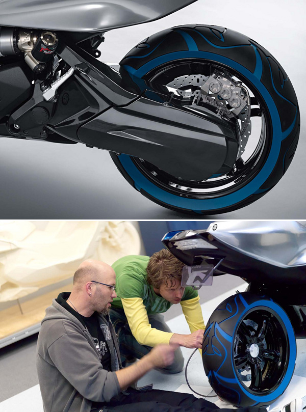 灰色烤漆搭配藍色線條塗裝,讓人想起BMW DynamicEffeciency概念車。